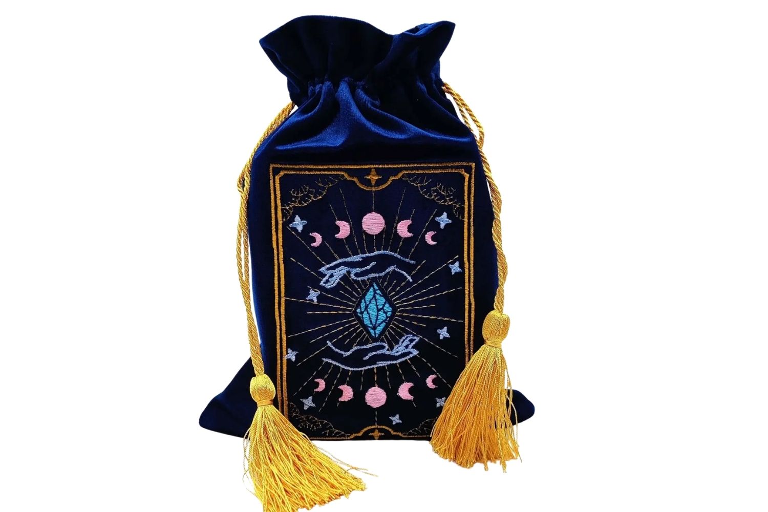 Guarda e protege os teus baralhos de tarot ou oráculo com elegância nesta luxuosa bolsa de veludo azul.