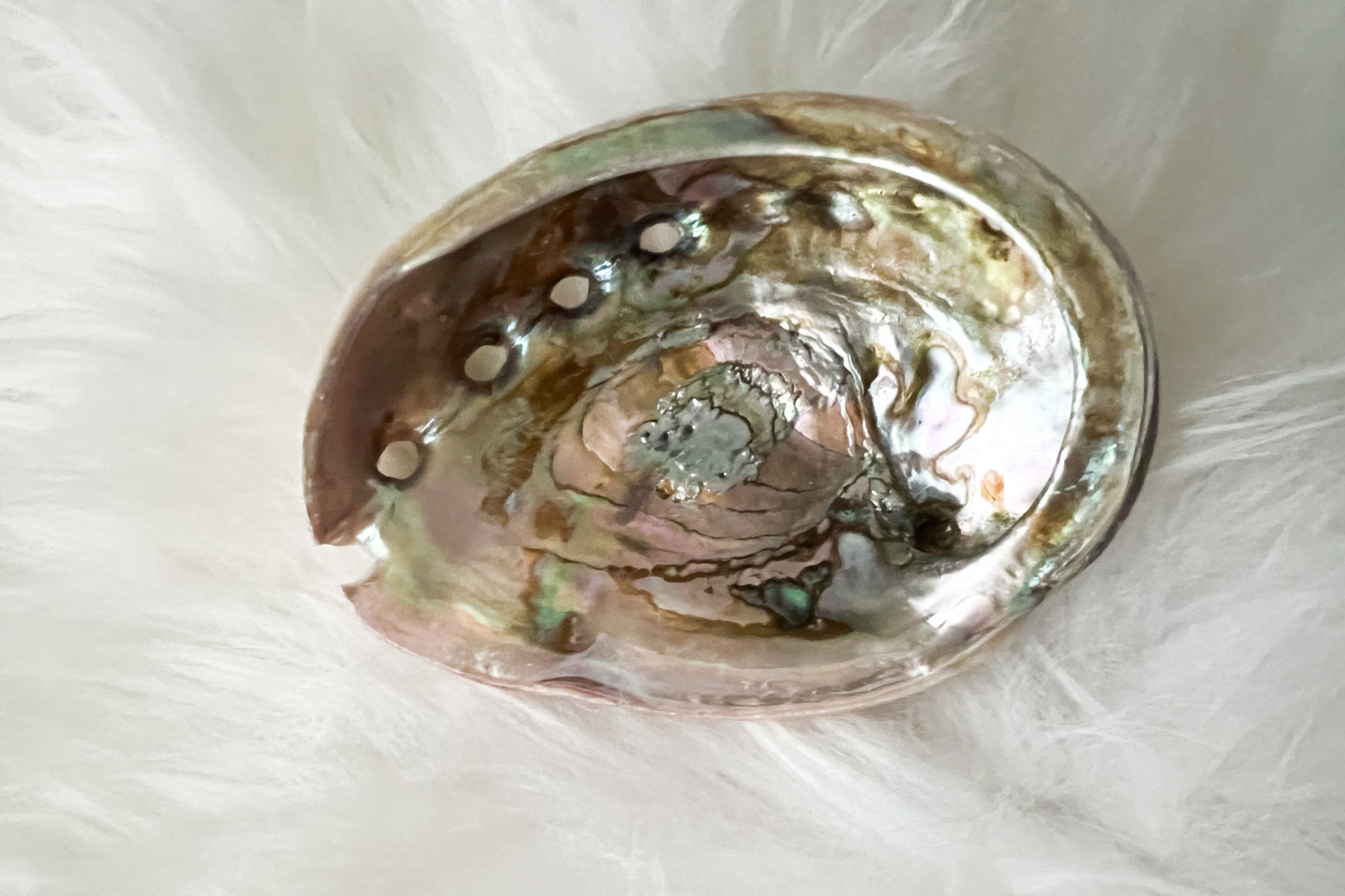 A concha de abalone é uma verdadeira dádiva da natureza, apreciada há milhares de anos pela sua beleza única. O seu interior iridescente, com reflexos semelhantes a pérolas, revela um jogo de cores fascinante que lembra um caleidoscópio natural.