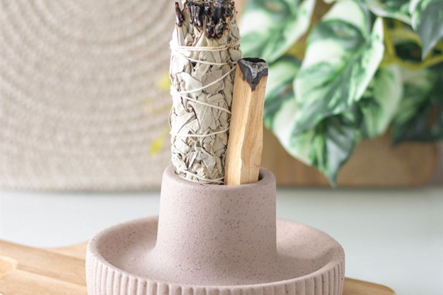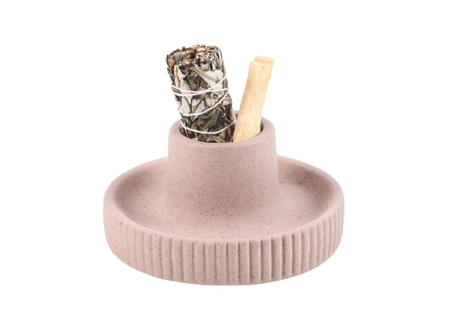 Esta taça de cerâmica canelada, em tom greige, é ideal para colocares sálvia, palo santo ou incenso durante os teus rituais de purificação energética.