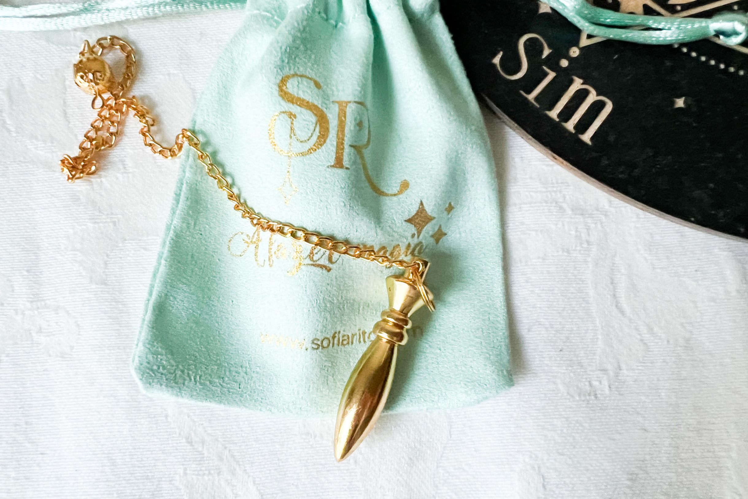 Todos os pêndulos incluem um saquinho de flanela para proteção e conservação.